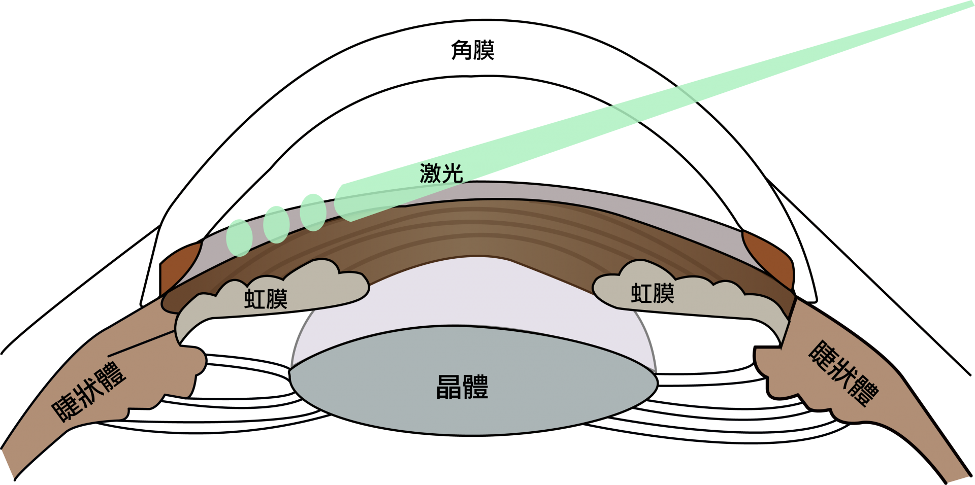 透過用激光在虹膜上開一個口,使房水可由後房流至前房,繞過瞳孔阻滯。